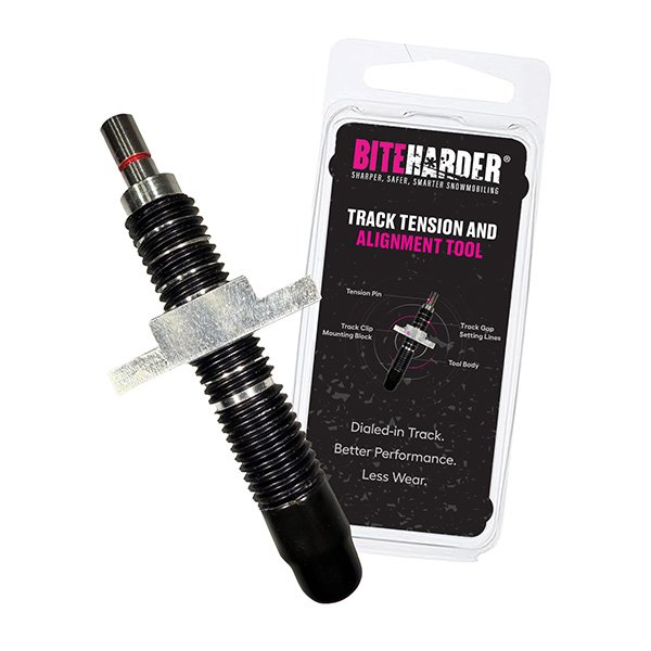 One of the most overlooked areas on all snowmobiles is the track. Improper track tension and alignment can lead to uneven component wear, poor performance and control issues, faster hyfax wear and a host of other problems. As tracks wear over time, the required tension, gap and alignment do as well. BITEHARDER’s new Track Tensioning and Alignment Tool now allows you to make these adjustments using a single tool, all in a hands-free manner. Visit our new website to see how simple the process is, and enjoy the benefits of better performance, improved ride characteristics, increased fuel efficiency, less hyfax wear and greater overall reliability.