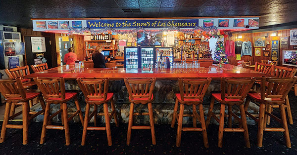 The area is known for its four season fun; boating, hiking, biking, kayaking, golfing, trail riding, snowmobiling, cross country skiing, snowshoeing, and ice fishing. And nestled just off the shoreline of Snows Channel in the heart of the Les Cheneaux and Cedarville, is Snow’s Bar & Grill. Snow’s Bar & Grill is your quintessential UP bar & grill complete with a beautiful field stone bar you can cozy up to knotty pine walls, handmade log chairs/barstools and custom one-of-a-kind tables handmade by a local Native American.