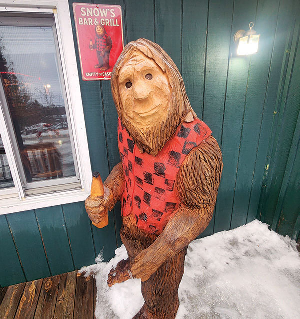 Snow’s has quite the history in the area, dating back to the early 1940s. It’s walls are dotted with nods to that history with photographs, antiques, and postcards. Intertwined with the history, you’ll find buffalo plaid, humorous signs, taxidermy, and glimpses of one of the rarest wildlife creatures in the UP…the Sasquatch. Their motto around the bar is “Drink till You Believe.” At Snow’s they believe in the possibility of many things, including Sasquatch!